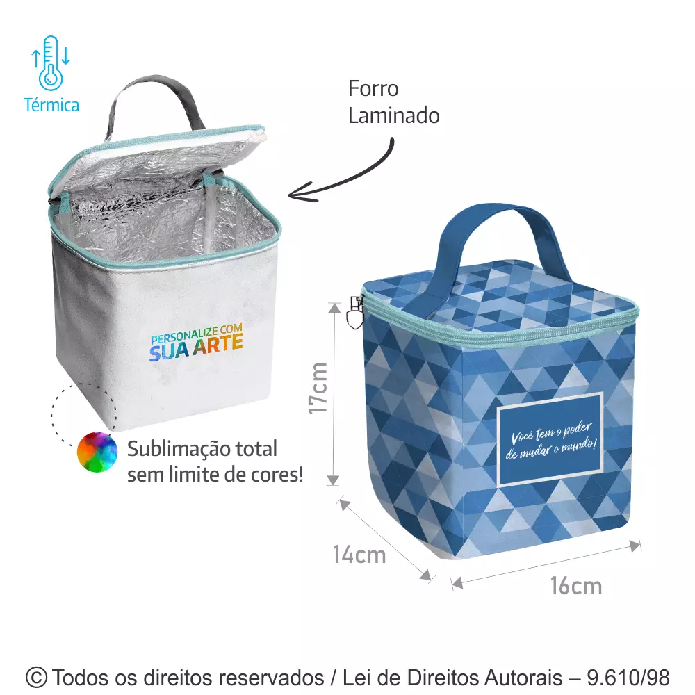 FRASQUEIRA DE TECIDO CÓRDOBA MEDIDAS: 16CM DE LARGURA X 17 CM DE ALTURA X 14CM DE PROFUNDIDADE. ALÇA DE MÃO DO MESMO TECIDO, FORRO TÉRMICO INTERNO, FECHAMENTO COM ZÍPER.