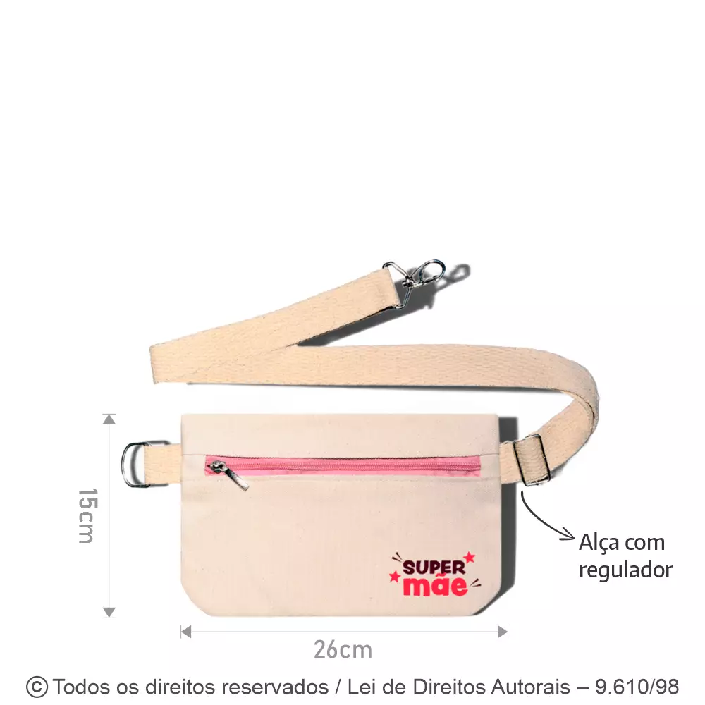 POCHETE DE LONA MEDIDAS: 26CM DE LARGURA X 15CM DE ALTURA CINTA DE FITA CRX DE ALGODÃO 30MM COM MOSQUETÃO E REGULAGEM DE MEDIDA. FECHAMENTO COM ZÍPER.